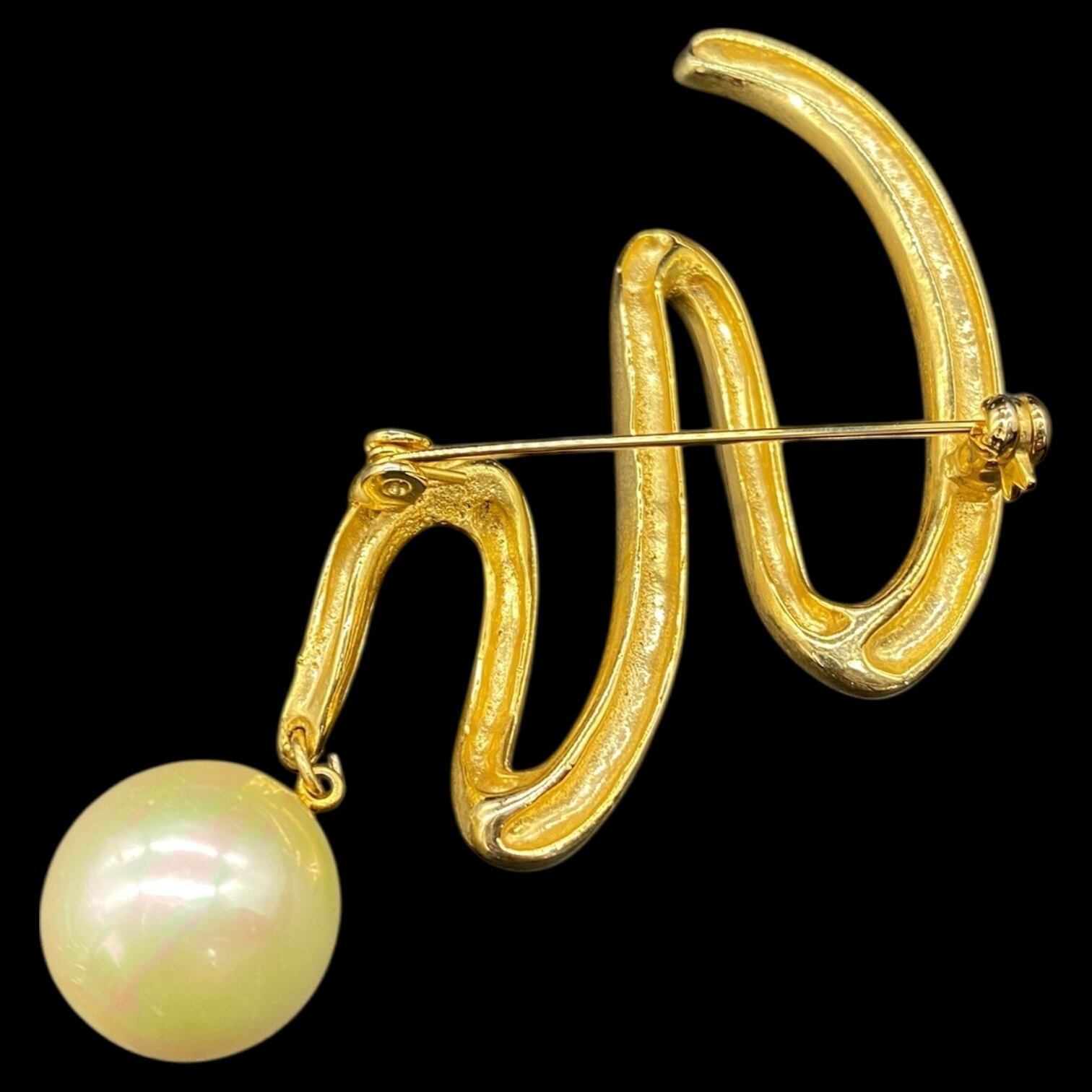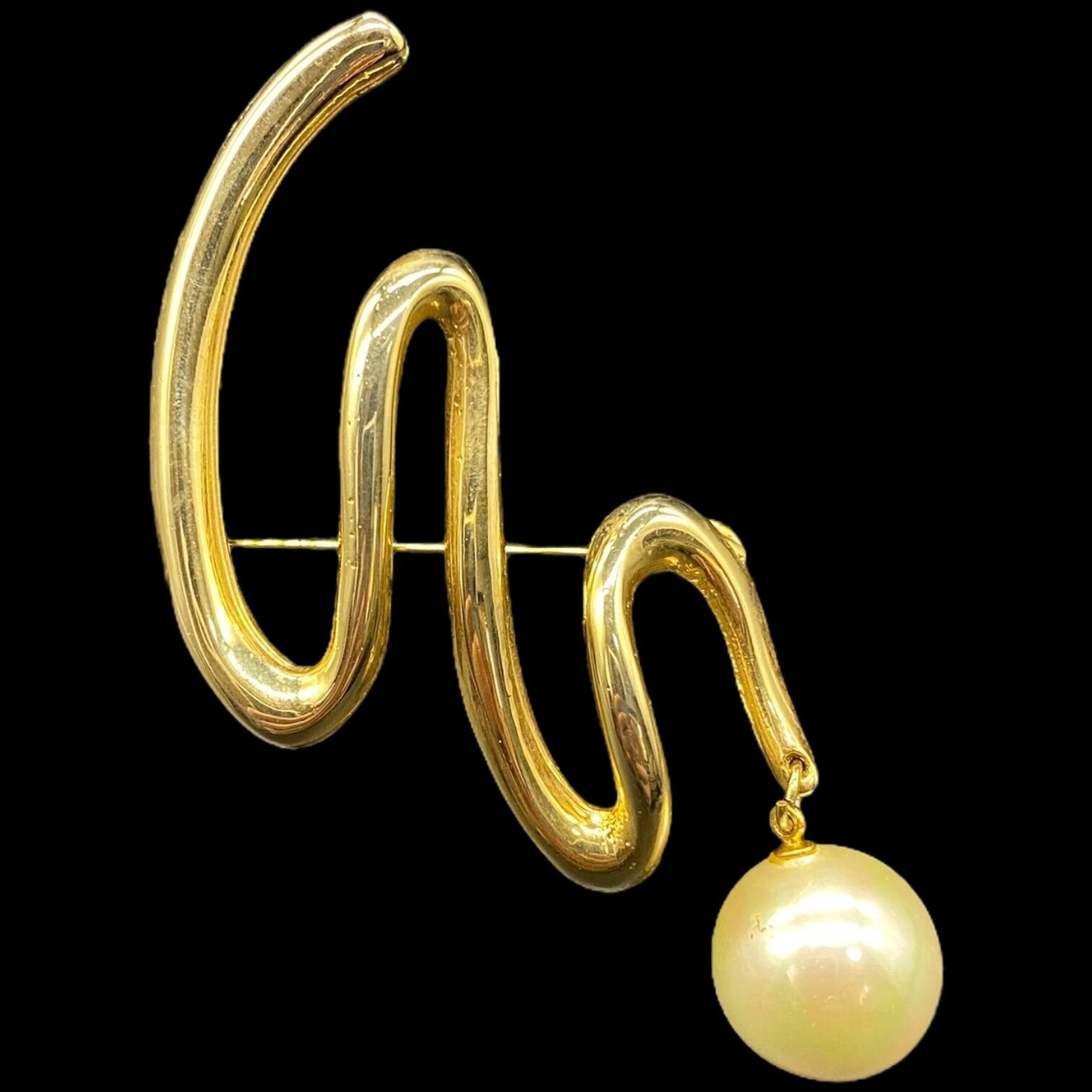 有機的な曲線が描く優美なフォルムに一粒の艶やかなパールが揺れる、洗練されたヴィンテージ風ブローチ。