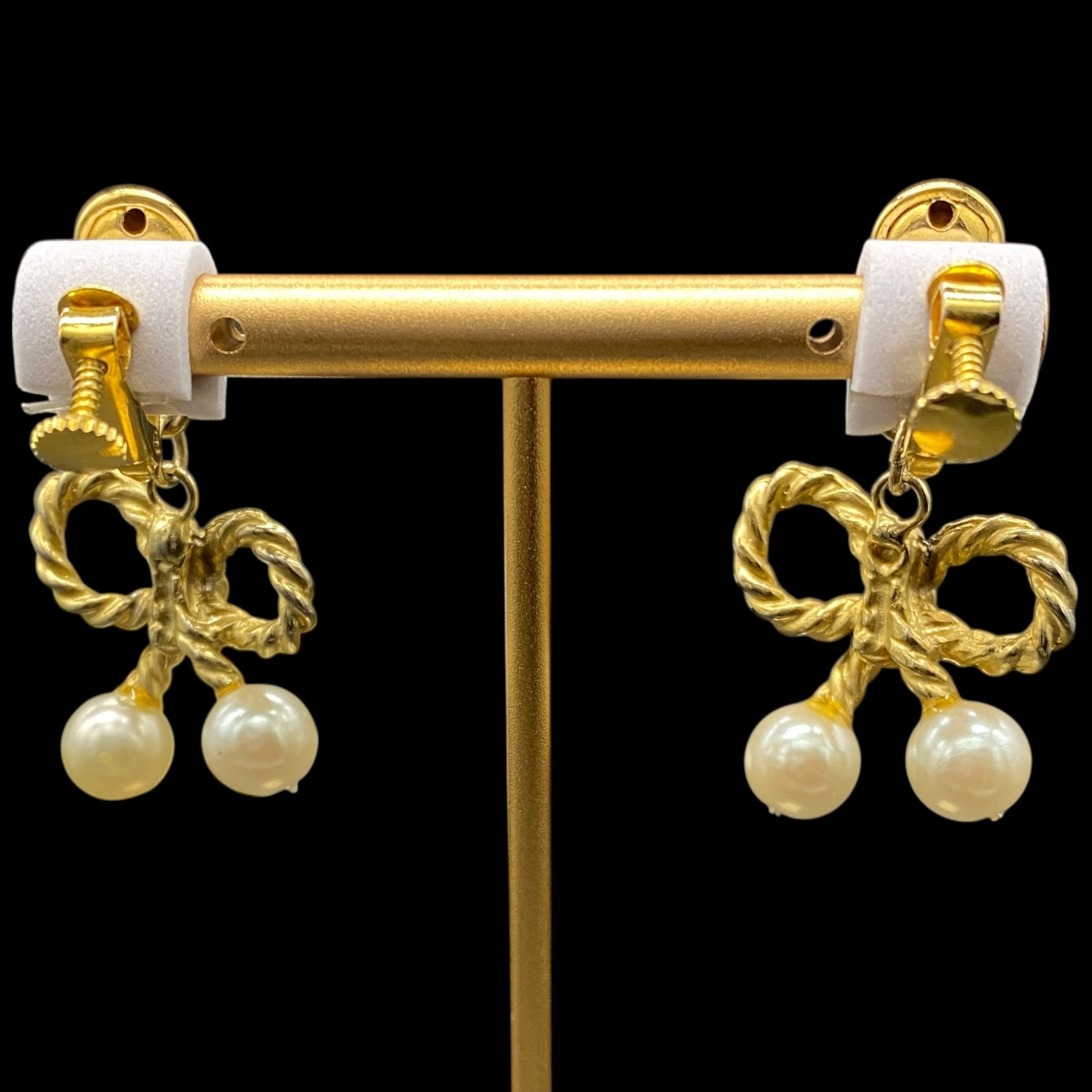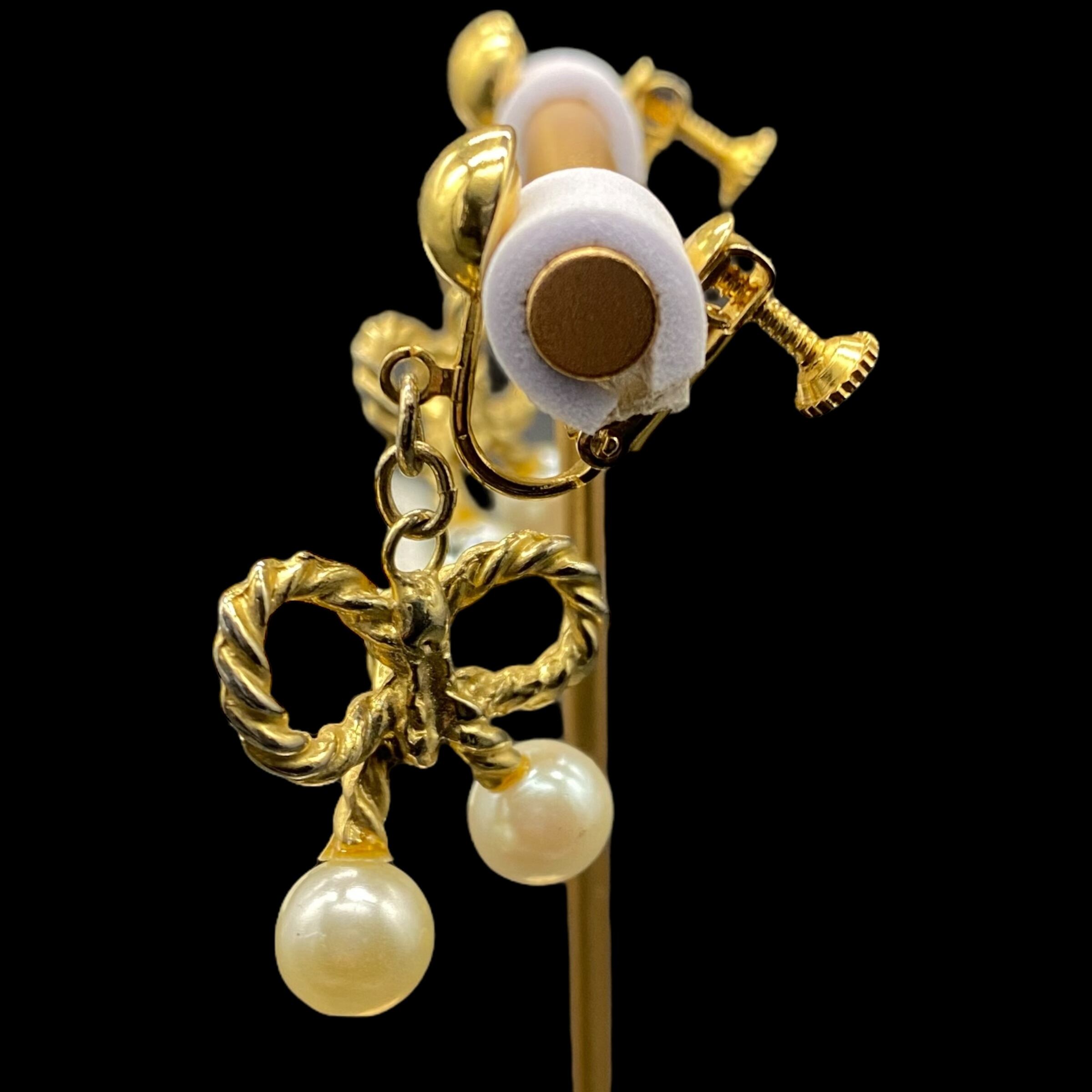 クラシカルな愛らしさと品の良さが漂うヴィンテージ調のリボンイヤリング。