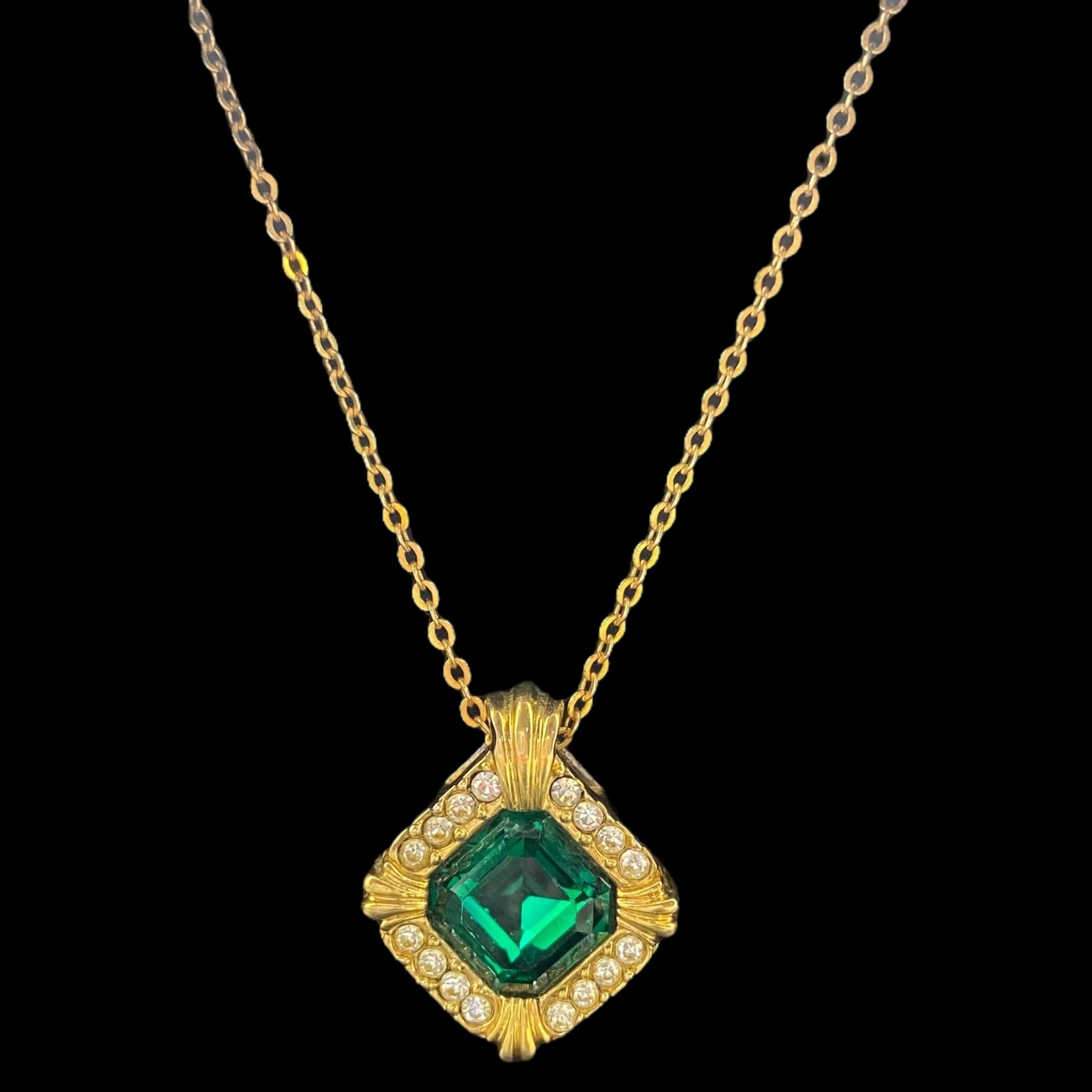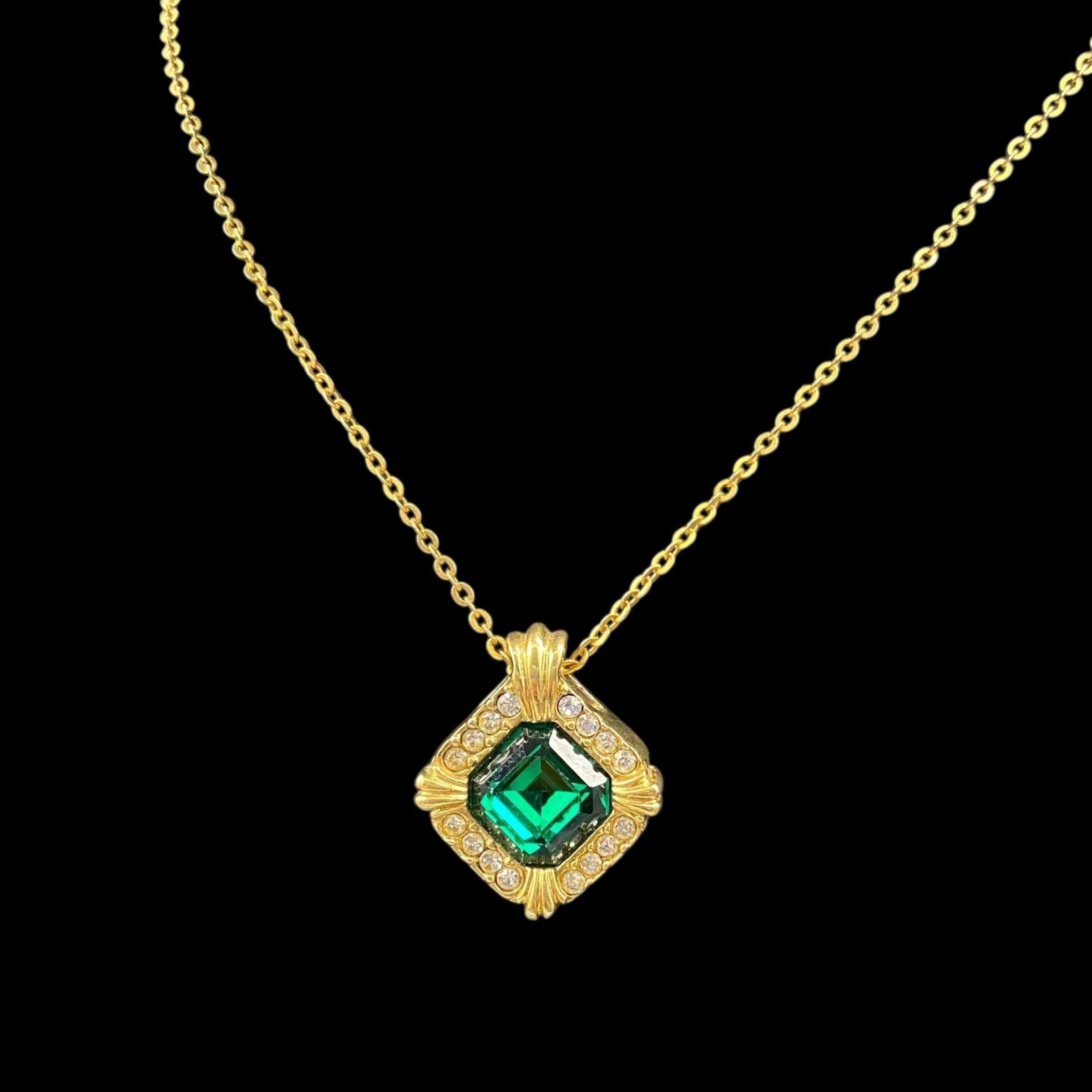 まるで過ぎ去りし時代の優雅な記憶を閉じ込めたかのような深く神秘的なグリーンの輝きを放つペンダントネックレス。