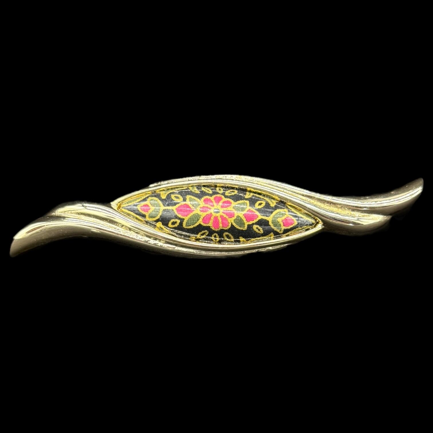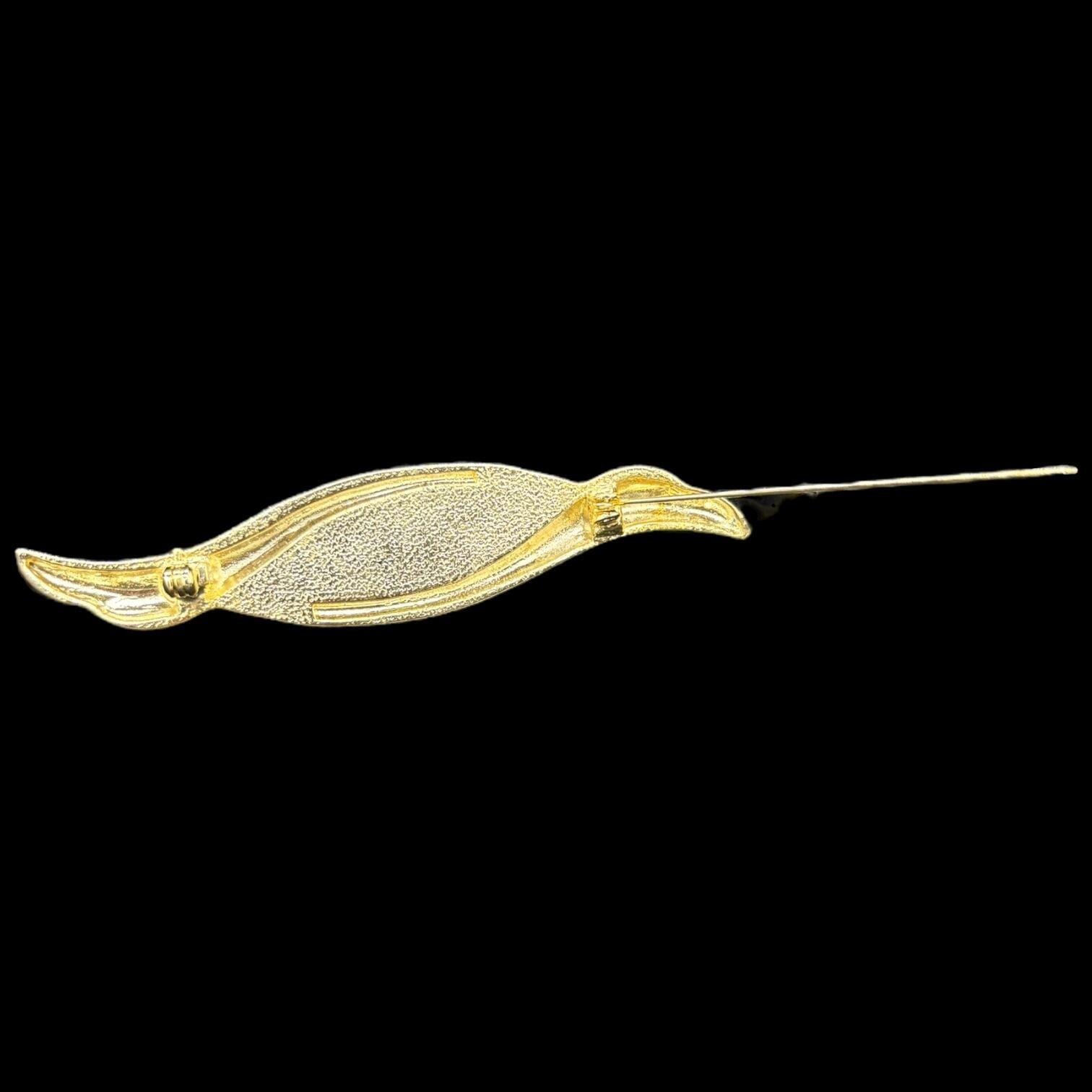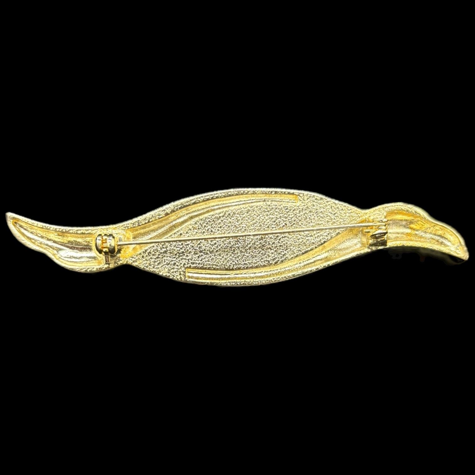 まるで時を超えて舞い戻ってきたかのような優美な流線型のゴールドトーンブローチ。
