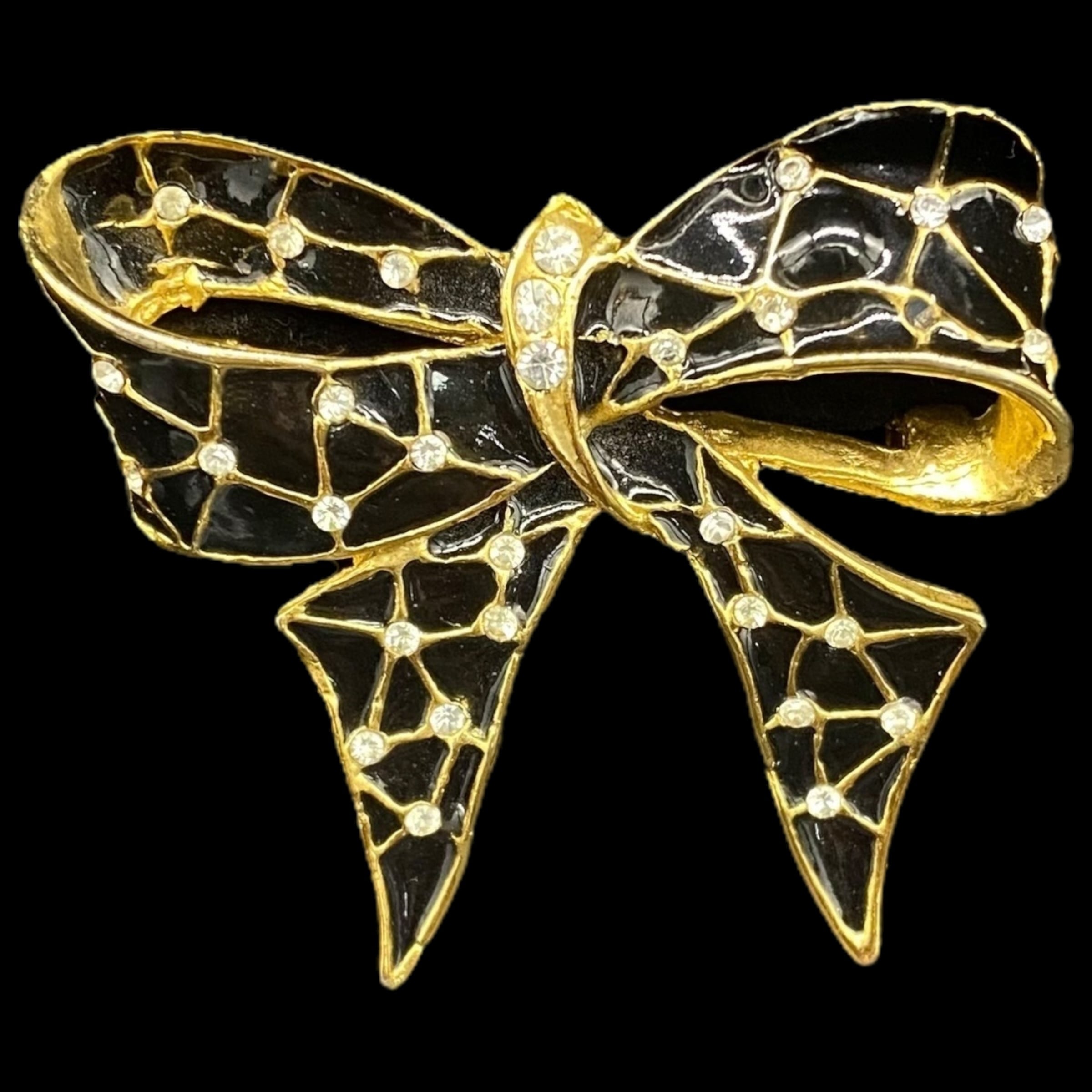 艶やかなブラックエナメルと煌めくラインストーンが織りなす