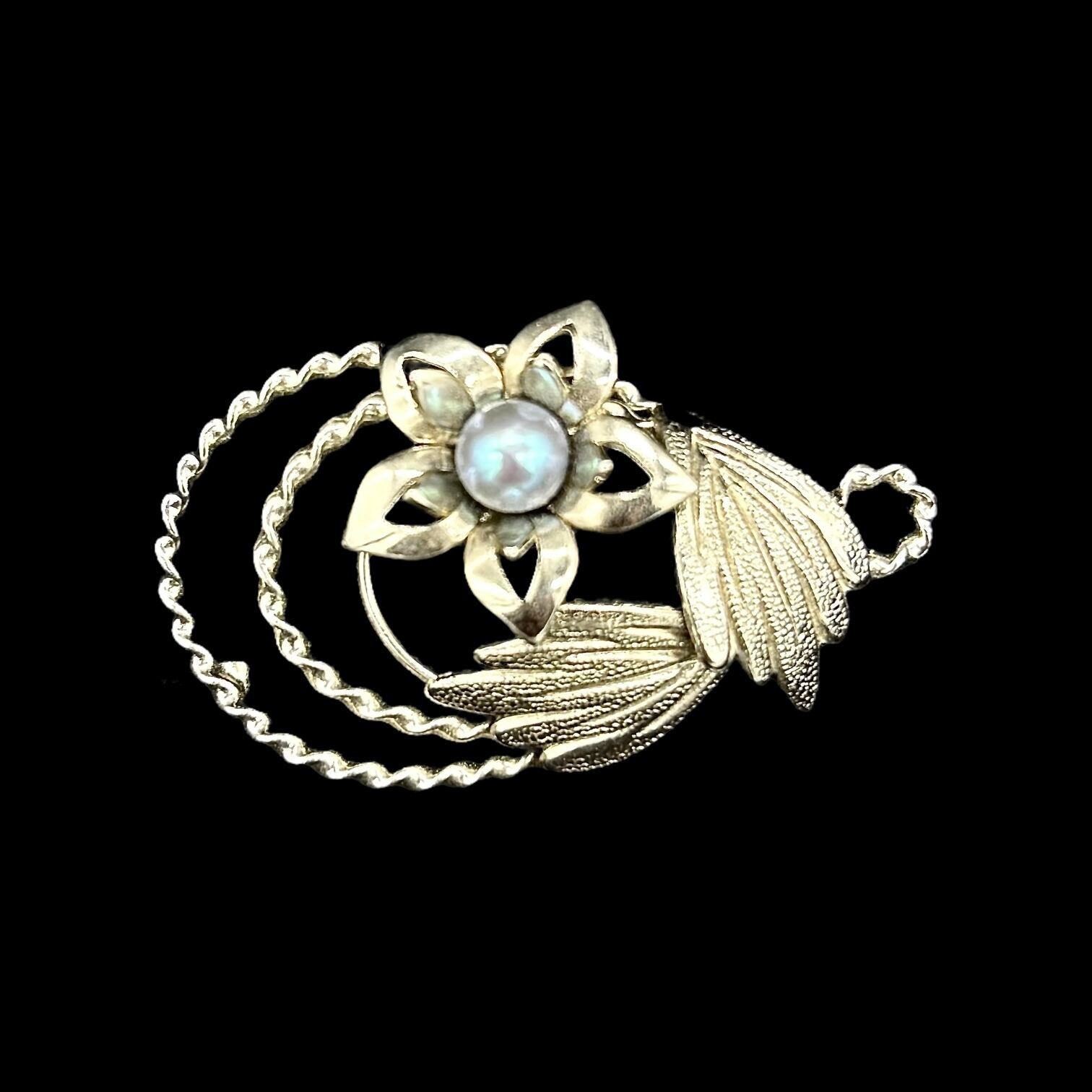 まるで時の止まった温室から摘み取られたかのような、繊細で詩的な魅力を湛えたヴィンテージゴールドブローチ。
